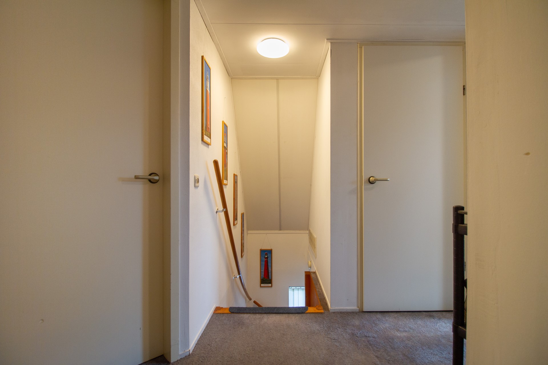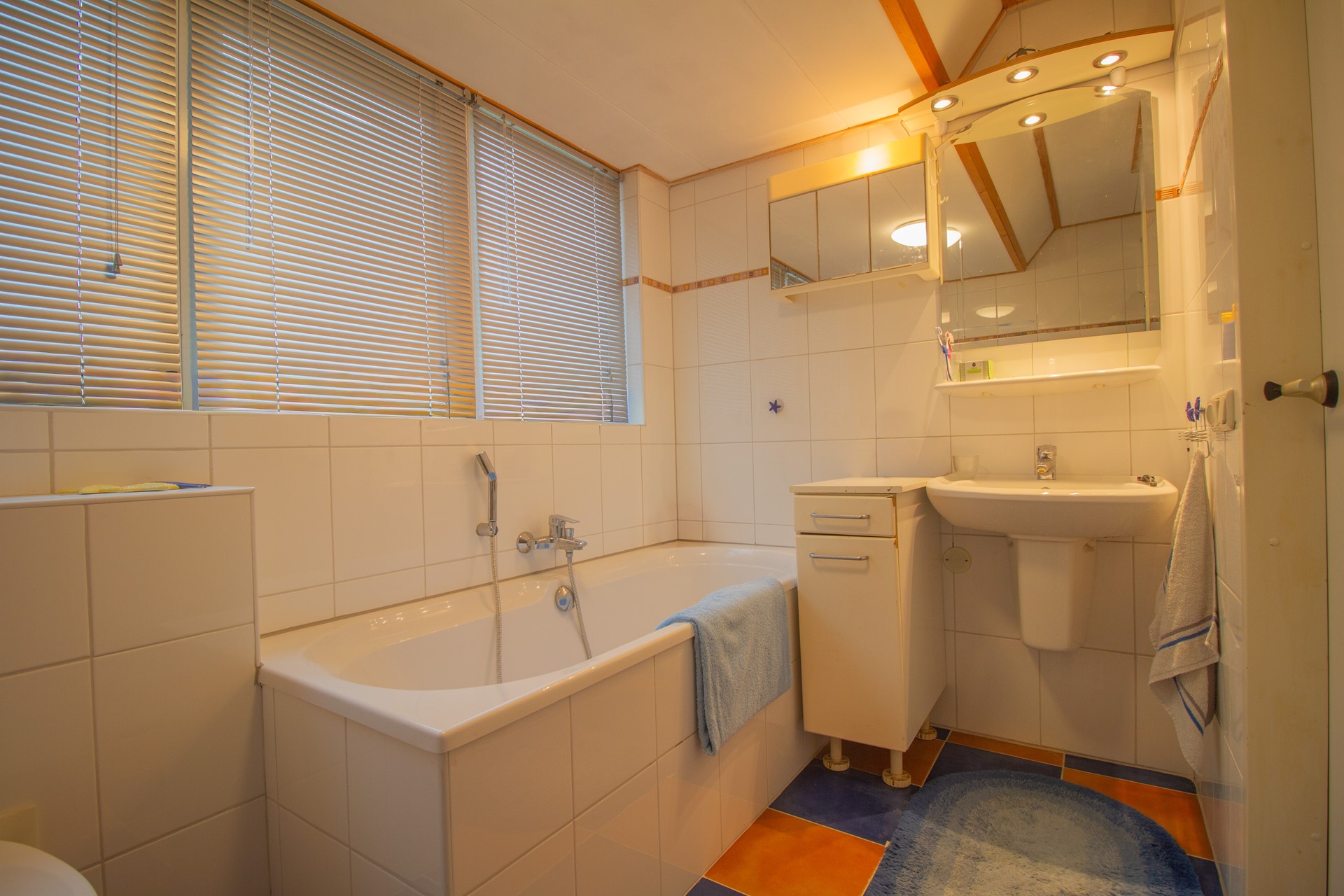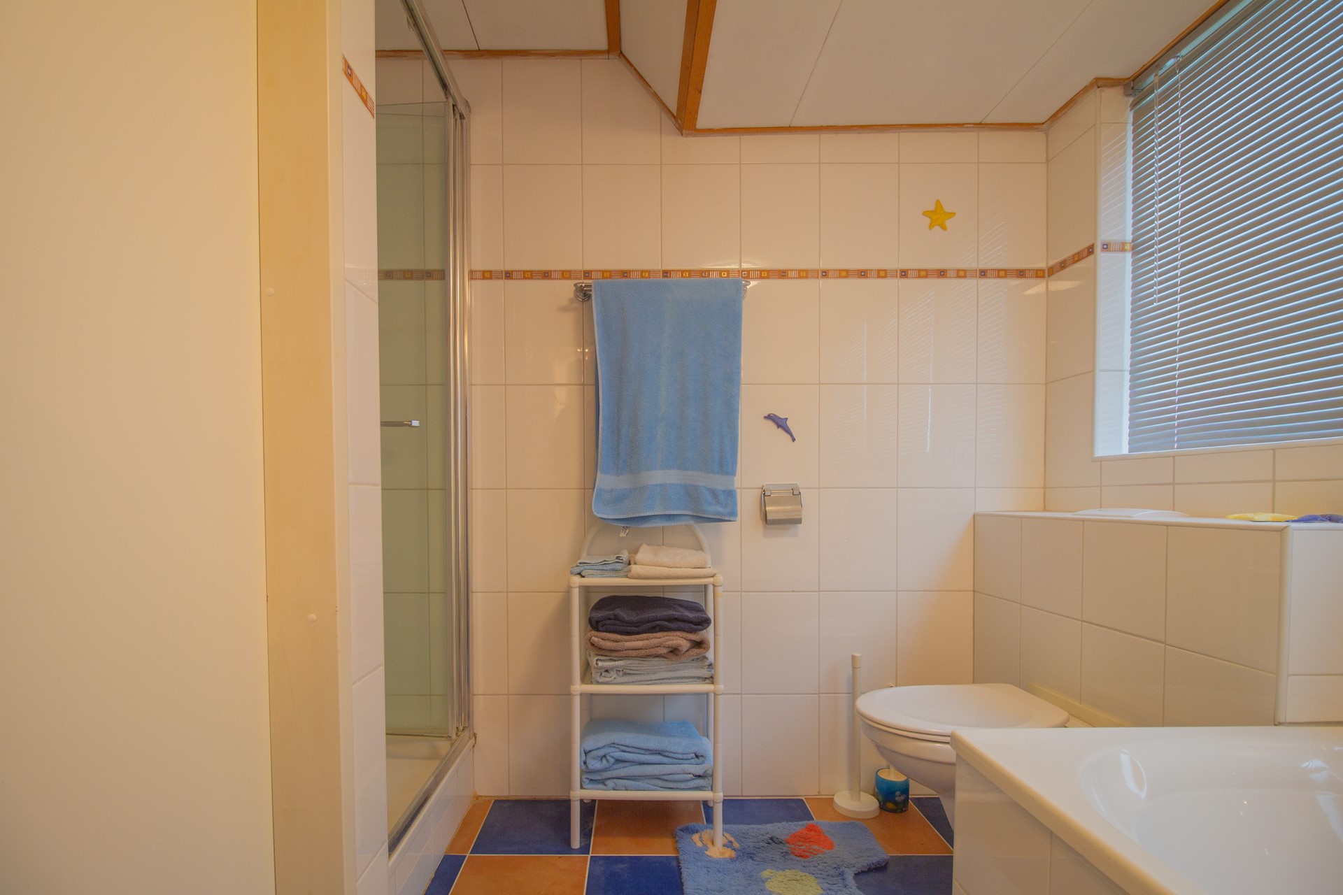 De eerste verdieping is via de vaste trapopgang in de hal te bereiken, waar de overloop toegang biedt tot drie slaapkamers en de badkamer met douche, ligbad, toilet en vaste wastafel. De ruime bergzolder is bereikbaar via een vlizotrap.