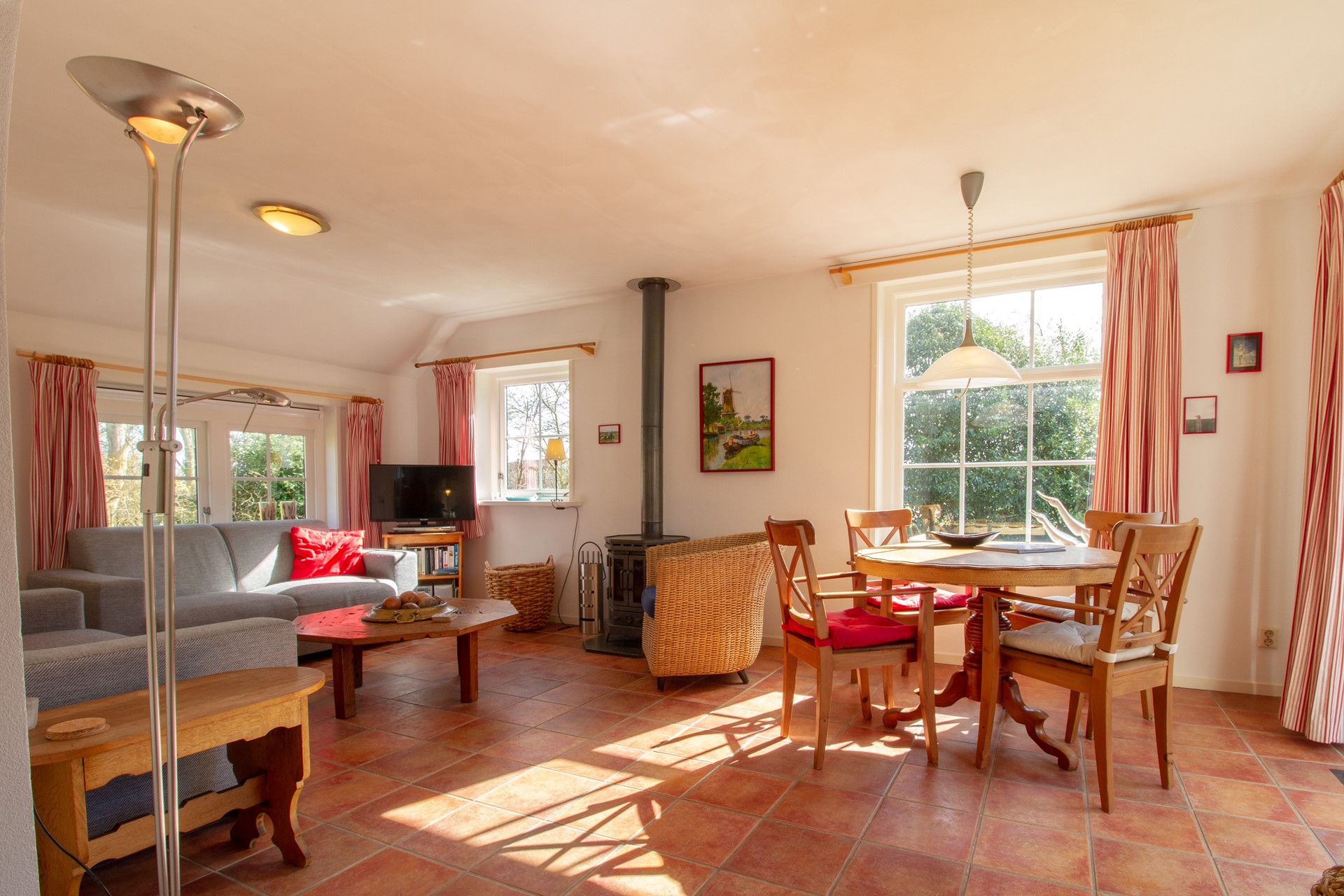 Woonkamer, afmeting ca. 6.14 x 3.57 m. (voorzien van houtkachel)