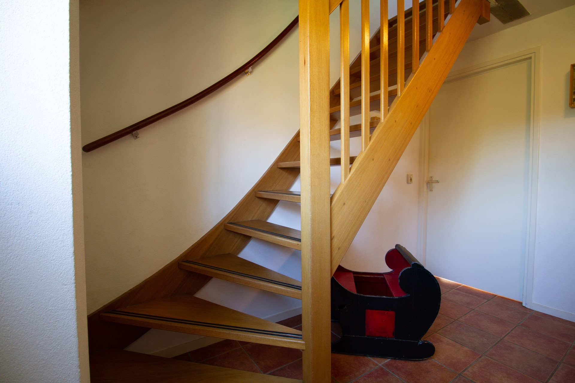 Middels de trapopgang in de centrale hal is de eerste verdieping te bereiken.