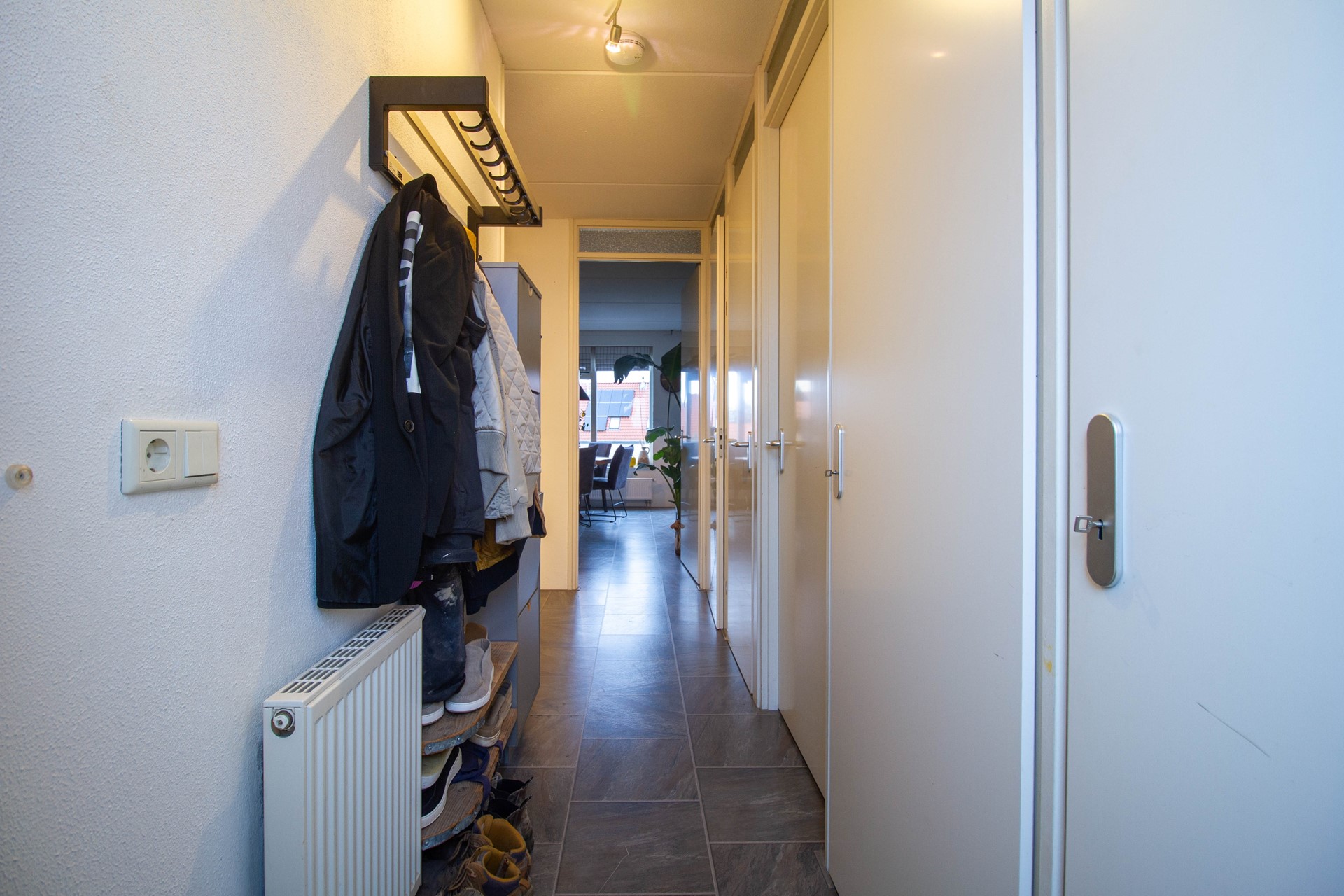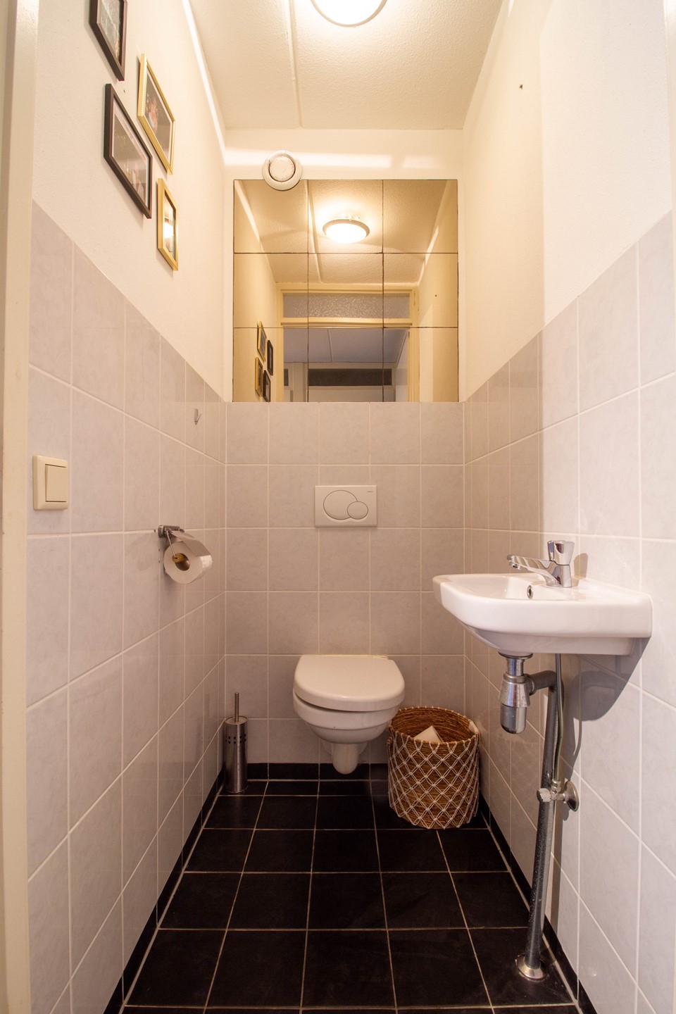 Wanneer je de vaste buitentrap oploopt, kom je via de galerij bij nummer 33. Binnen stap je via de nette entree, direct in de hal, van waaruit je toegang hebt tot twee slaapkamers, de trap naar de verdieping en de badkamer met douche en wastafel, waar ook plek is voor een was-droogcombinatie. Vanuit de hal bereik je tevens het aparte toilet. Loop je door, dan kom je in de lichte woonkamer met open keuken, waar meteen de ruimtelijkheid en gezelligheid opvallen. De keuken met alle basisbenodigdheden sluit direct aan op de woonkamer. Vanuit de woonkamer is er ook toegang tot het balkon, op het oosten gelegen.