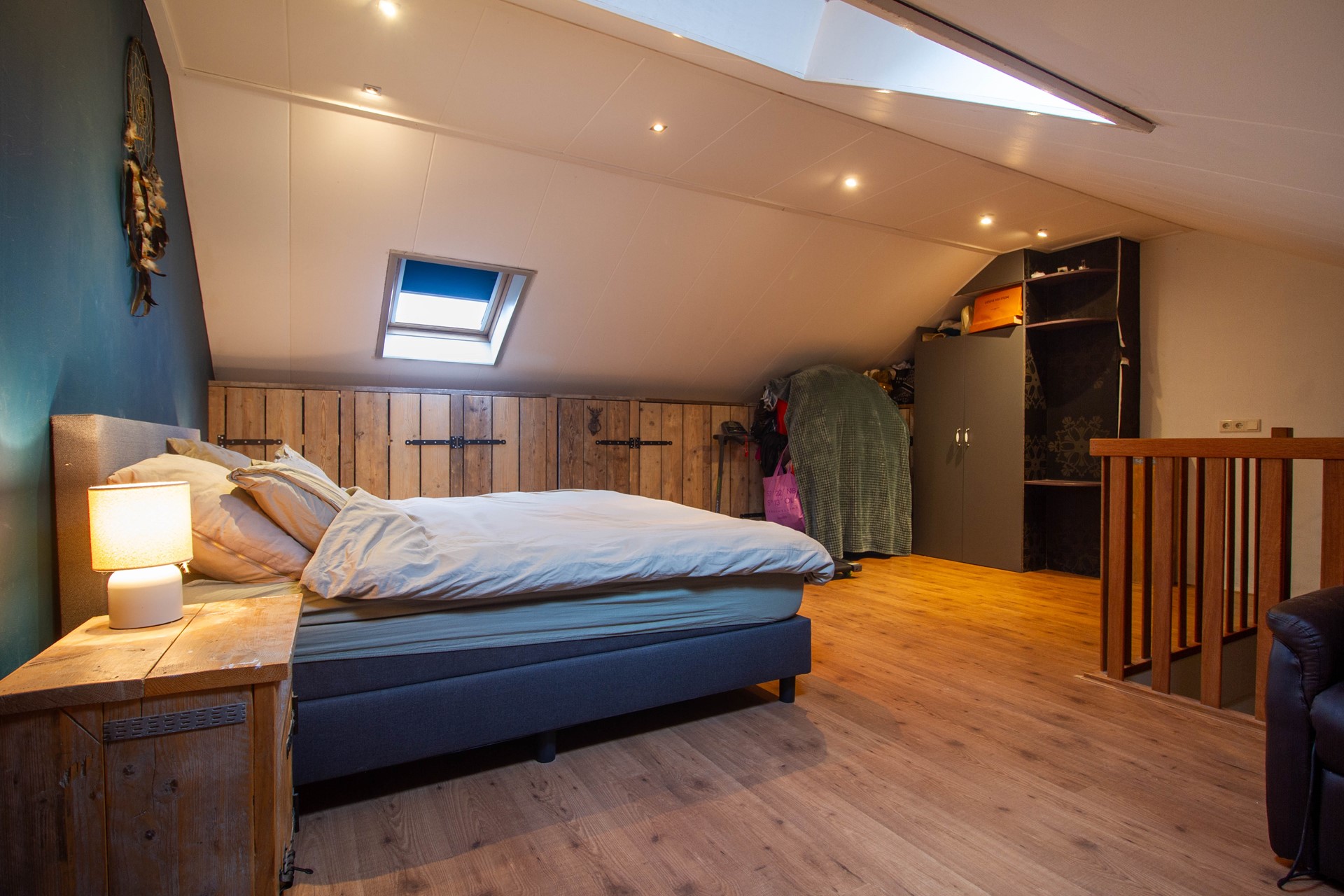 Via de vaste trapopgang toegang tot de zeer ruime zolder/slaapkamer, die eventueel ook gebruikt kan worden als kantoor of hobbyruimte.