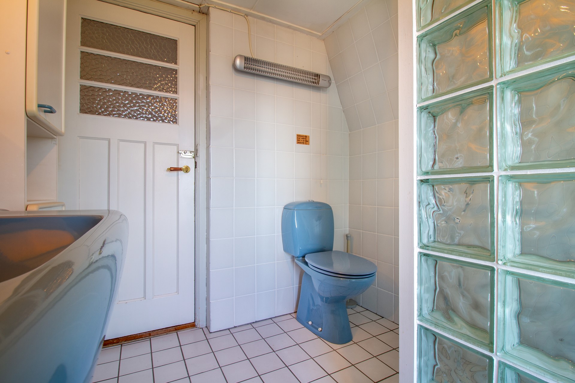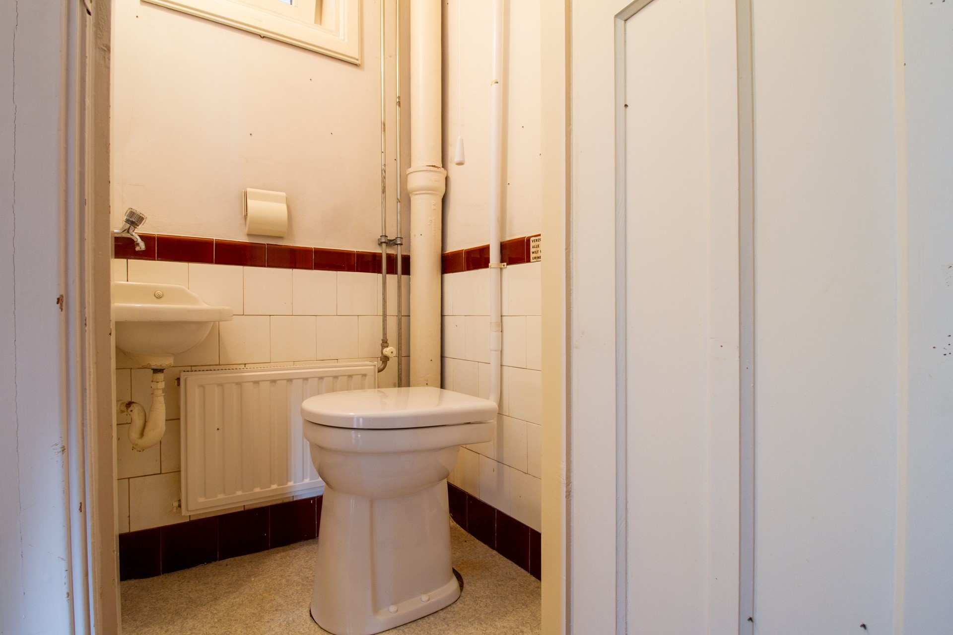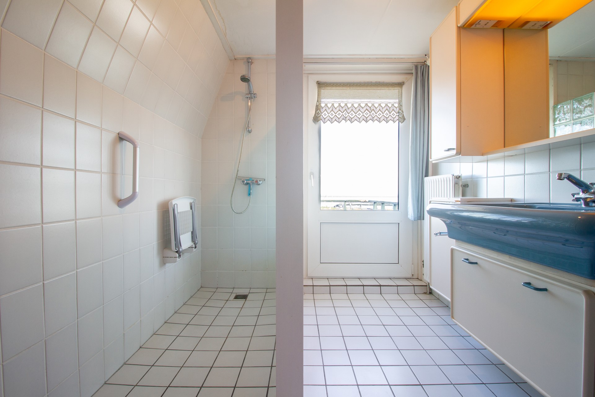 De badkamer beschikt over een toilet, douche en wastafel. Tevens vanuit badkamer toegang tot dakterras.