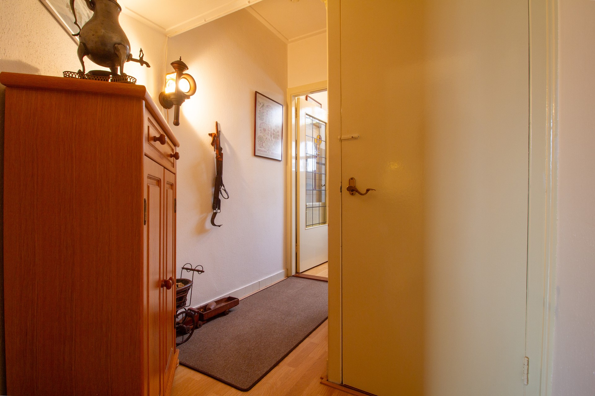 Tochtportaal en centrale hal, totale afmeting ca. 1.94 x 3.8 m. (inclusief trap en kelderkast) Woonkamer met eetgedeelte, afmeting ca. 2.72/4.79 x 8.07 m. Keuken, afmetingen ca. 2.23 x 2.79 m. Bijkeuken, afmetingen ca. 0.90 x 2.42 m. Badkamer, afmetingen ca. 1.24 x 2.42 m.