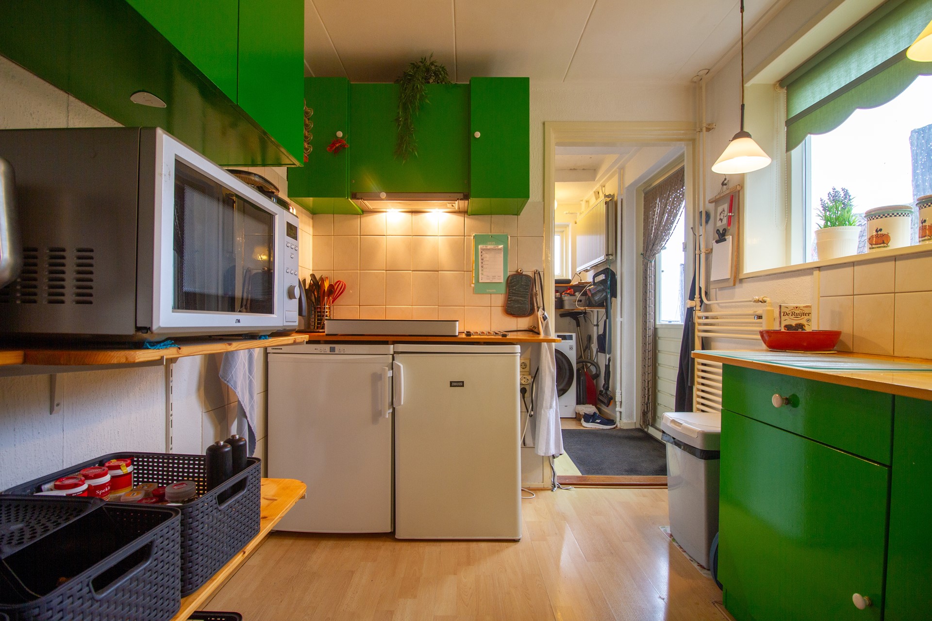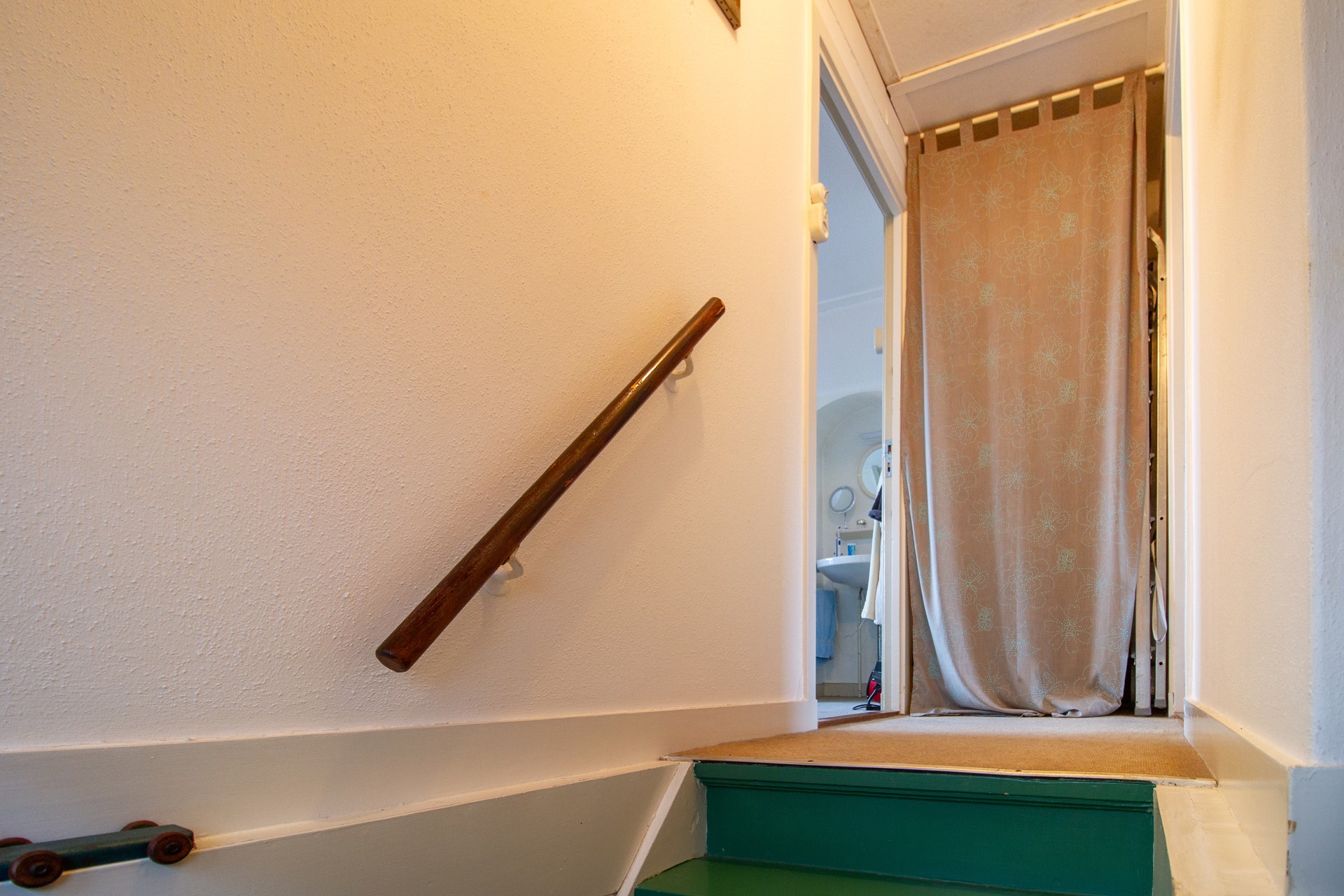 Entree: tochtportaal met aansluitend centrale hal welke toegang geeft tot de kelderkast en vaste trapopgang naar de eerste verdieping. Vanuit de hal kom je in de ruime woonkamer en eetgedeelte met prachtig uitzicht over de haven. De woonkamer geeft toegang tot de keuken met aansluitend de bijkeuken, hier bevindt zich de Cv-installatie en de aansluitingen voor witgoedapparatuur. De badkamer (douche/toilet/wastafel) is te bereiken vanuit de bijkeuken. Het terras, gelegen op het zuiden, is te bereiken via de bijkeuken en heeft een fantastisch uitzicht over de haven!